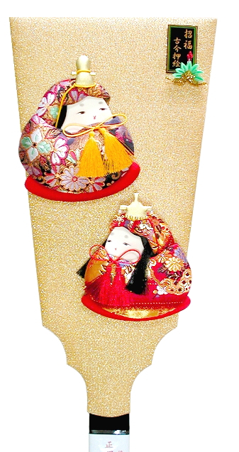招福のだるま雛の羽子板飾りです。